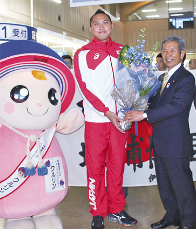 市役所を訪れたこの日は、高山松太郎市長から花束を受け取ると「メダルを獲れるように頑張ります」と力強く宣言。ロビーで出迎えた市職員や市民およそ150人からは大きな拍手と声援が送られた。