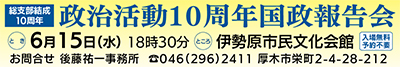 この10年間の活動を振り返る国政報告会を開催させていただきます。ぜひご参集ください。