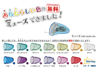 スターキー補聴器では、「音楽」と「言葉」が同時に聴こえやすくなる「Muse(ミューズ)」が好評。さらに補聴器が楽しくなる13色のバリエーションが登場!新しい聴こえを好きな色で始めてみては。