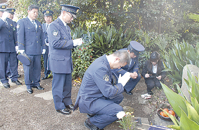 慰霊祭には伊勢原警察署員ら約25人が参列。県警初の殉職者として亡くなった祝井巡査の勇気をたたえ、市民を脅かす犯罪への対決姿勢を再認識した。