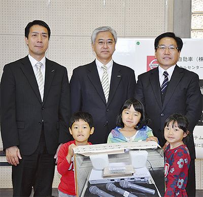 日産自動車(株)テクニカルセンターは4月13日、伊勢原小学校にワイヤレスマイクセットを寄贈した。