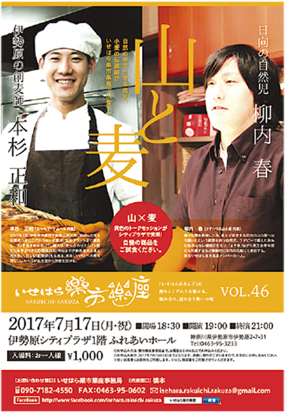 今回のテーマは「山と麦」。ゲストスピーカーには市内日向のクアハウス山小屋代表・柳内春さんと、板戸のムール ア・ラ ムール代表・本杉正和さんの2人を迎え、自然の中で生きる男と小麦の伝道師の異色のトークセッションが繰り広げられる。当日は、各店自慢の商品の試食も用意される予定。