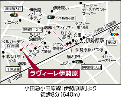 同ホームは、玄関を入ると高級感のあるラウンジやカフェがくつろぎの空間を演出している。屋上からは伊勢原の街と自然を一望できる。春になると全居室から千津ふれあい公園の桜も堪能することができる。伊勢原駅から徒歩8分の好立地で、閑静な住宅街の中、保育園なども近く子どもたちの元気な声も聞こえてくる。