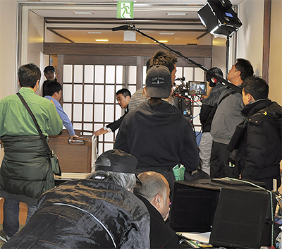 三ノ宮の高齢者総合支援センター「泉心荘」で2月10日と11日に福祉施設の防犯対策を啓発するDVD撮影が行われた。公益財団法人日本防災通信協会が企画。「いせはらフィルムコミッション」が泉心荘を選んだ。