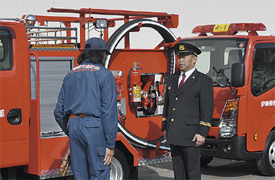 伊勢原市消防団(加藤重治団長)に配備される消防団車両2台が更新時期を迎えたことから、市消防署南分署で2月24日、新車両の引き渡し式と取扱い説明が行われた。