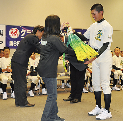 壮行会には大川要会長をはじめ、高山松太郎伊勢原市長、チーム関係者、OB、高校野球関係者らなど約200人が参加。全国選抜大会に出場を決めた選手たちに激励の言葉を送っていた。大里監督は「練習は厳しく試合は楽しくやるように日頃から言っている。それを全国でも忘れず頑張ってくれることを期待している」と健闘を誓った。