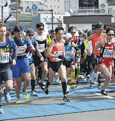 第33回大山登山マラソンが3月11日、伊勢原駅北口から大山阿夫利神社下社までの全長9・0Kmで行われた。全国から健脚自慢の2579人がエントリーし2452人が完走した。