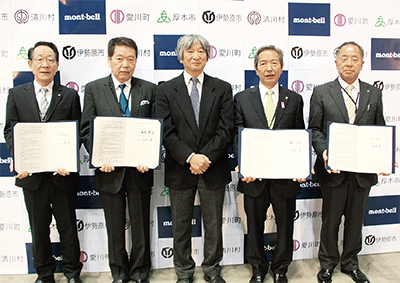 伊勢原市や厚木市など県央の4市町村が3月18日、アウトドアメーカーの(株)モンベル(本社・大阪市西区)と包括協定を締結した。環境、教育、防災など幅広い分野で連携することで、丹沢・大山・宮ヶ瀬エリアの更なる活性化を図る。