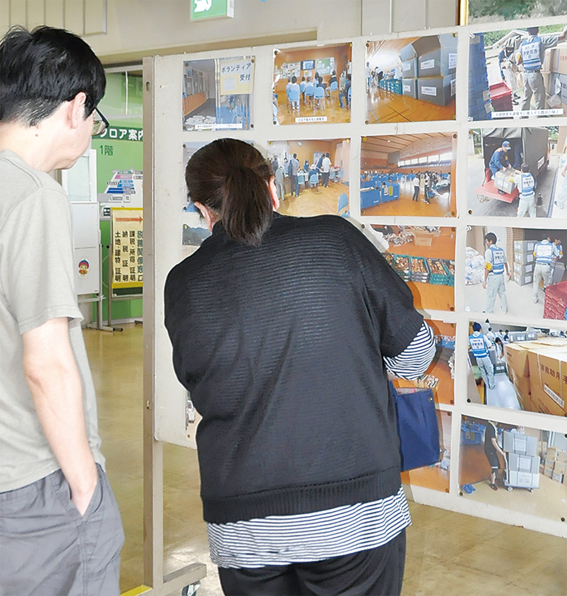 展示された写真に足を止めた来庁者は「伊勢原から支援に行っていることを知った。1日も早く被災地が復興することを願っている」と話した。