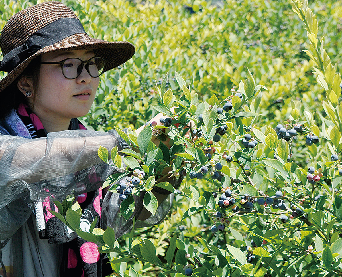 市内笠窪のB&Vガーデンでは、寒さに強く酸味と甘みのバランスがとれたハイブッシュ系と暑さに強く甘みが強いラビットアイ系の品種をそれぞれ10種類以上、400本ほど栽培している。