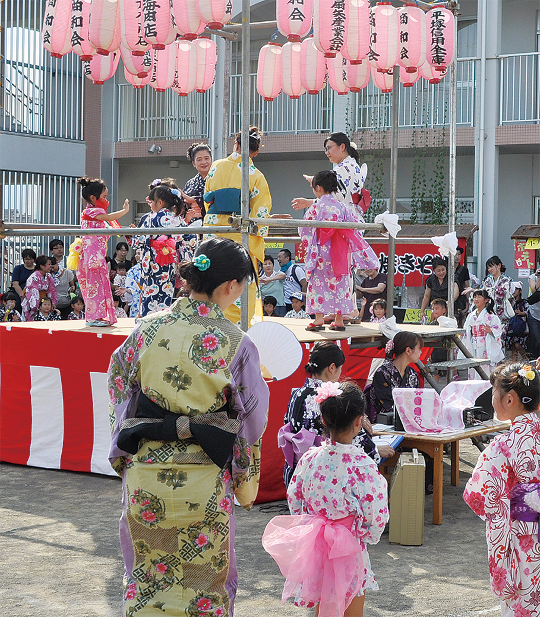 しかし盆踊りは園児と一緒に保護者や園職員らも参加して行われ、園児たちは皆笑顔で楽しそうに踊っていた。また職員による模擬店も多数出店し、会場は大いに盛り上がりを見せていた。
