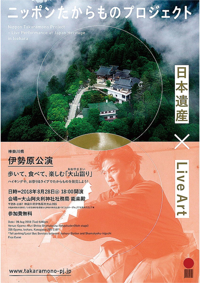 大山阿夫利神社の秋季例大祭に合わせて開催される同プロジェクトの伊勢原公演。当日は大山阿夫利神社の権禰宜の目黒久仁彦氏と進行役のセインカミュ氏とのトークや、例大祭で奉納される「倭舞」や狂言なども特別上演されるほか日本舞踊家らによる舞や長唄なども披露される。また食事やお酒が楽しめるコーナーも設けられ、伝統芸能と祭りを同時に堪能できる。
