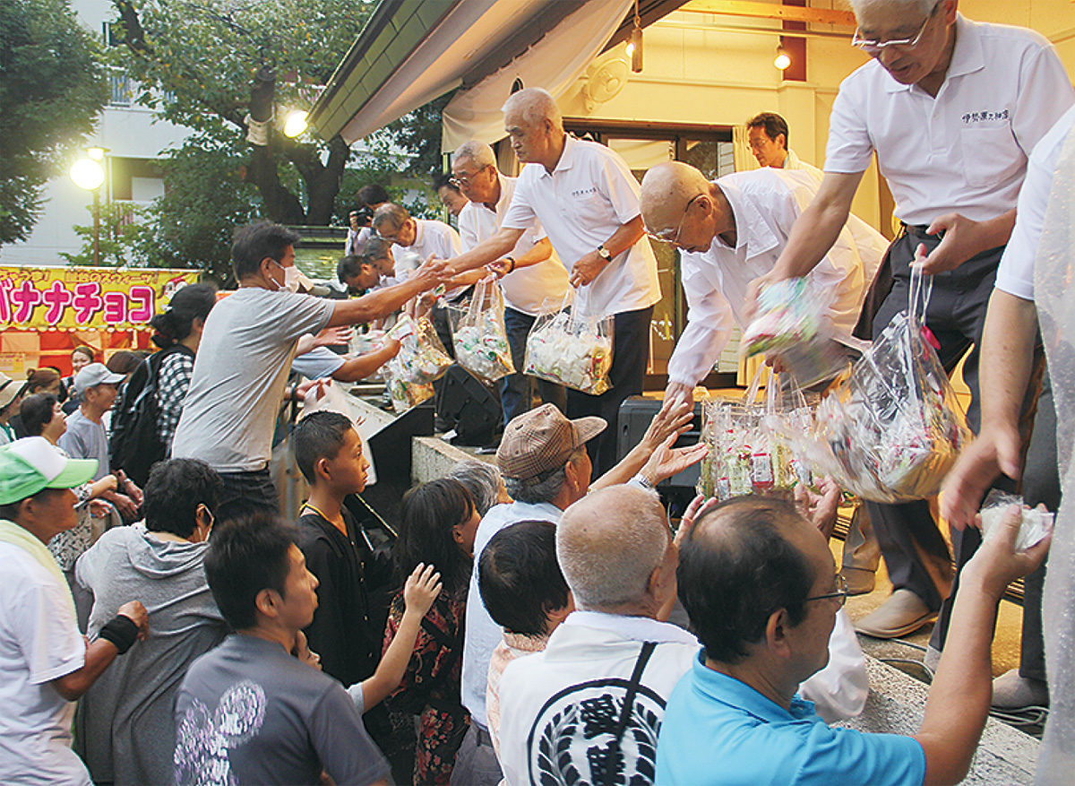 途中、豪雨に見舞われながらも午後4時過ぎには無事に宮入り。神楽殿で総代世話人による宝撒きや歌謡ショーなどが行われ、盛り上がった。