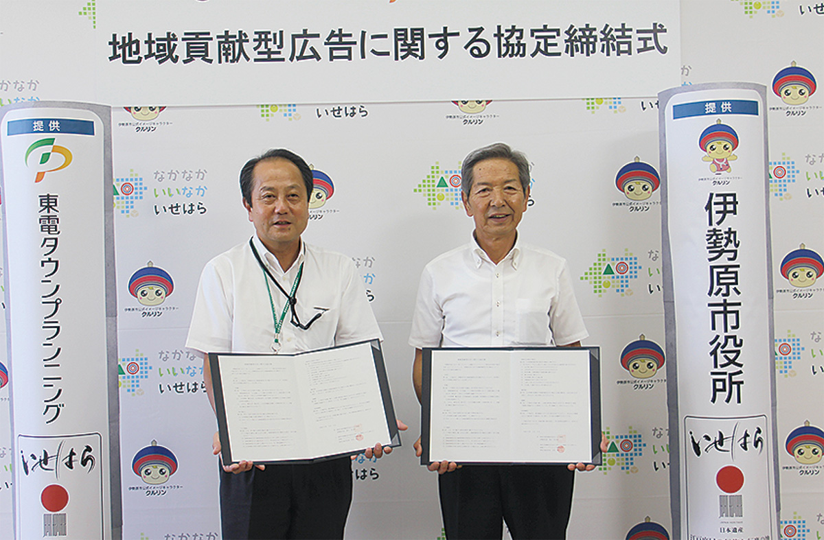 伊勢原市と東電タウンプランニング株式会社神奈川総支社(横浜市/吉田收総支社長)は今月5日、「地域貢献型広告に関する協定」を締結した。