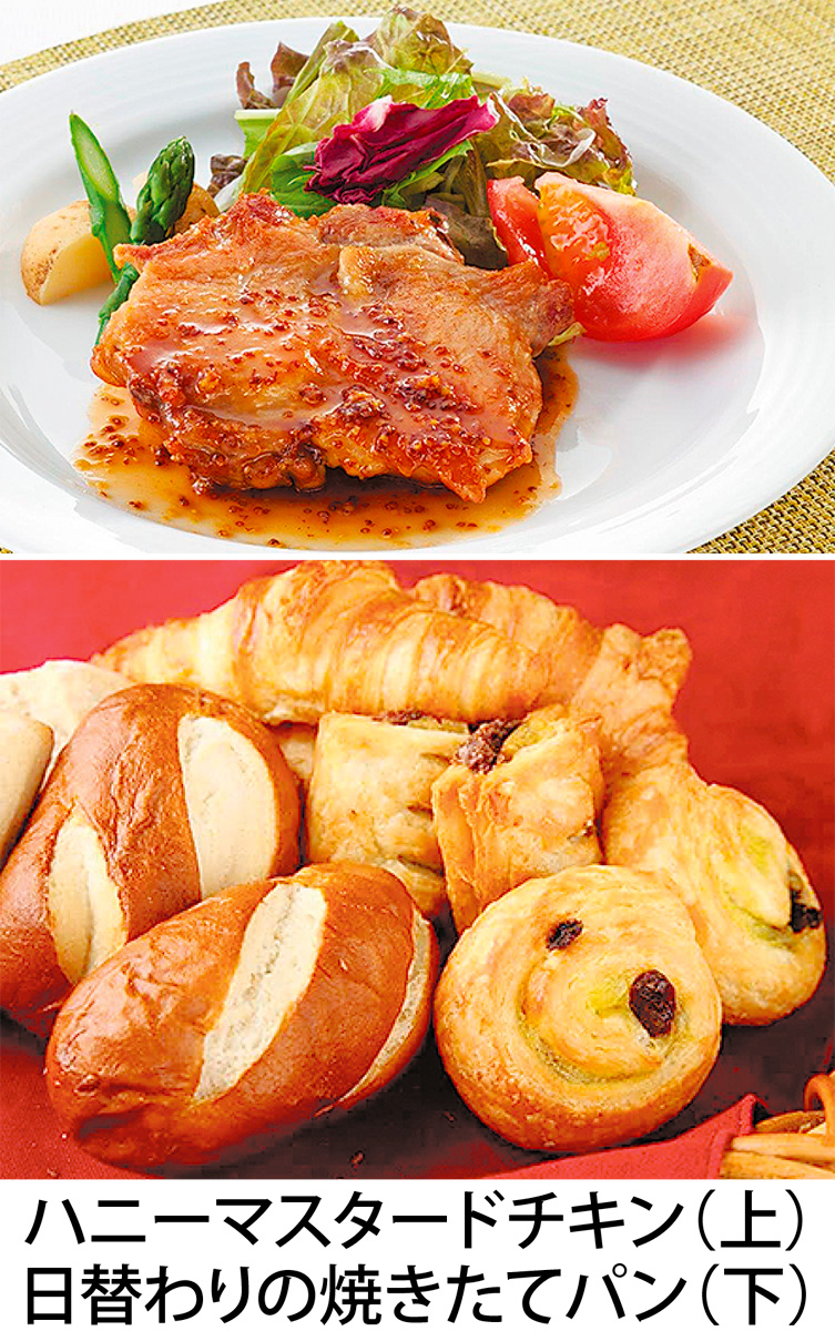 平日の午前11時から午後3時(L・O2時)は、同店自慢の焼きたてパンが食べ放題(コース料理1836円※税込)+焼きたてパン食べ放題+こだわり紅茶・コーヒー飲み放題)。12歳以下のお子様にはパン食べ放題+ソフトドリンク飲み放題(594円〜)の「お子様ランチメニュー」もあるのがうれしい。
