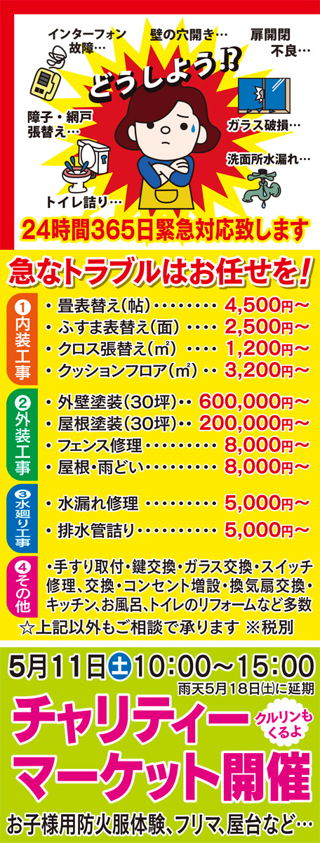水漏れや停電などの緊急工事には、24時間365日対応してくれるのもうれしい。