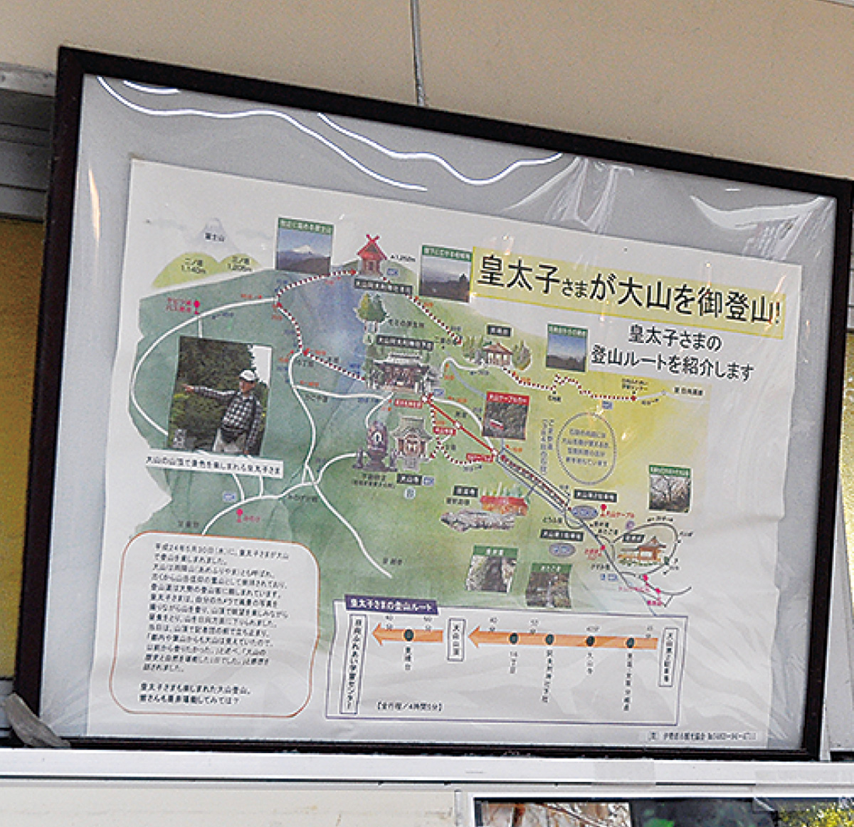 プリンスルートは陛下の大山登山を記念して、市観光協会が作成。伊勢原駅改札横や市商工会事務局などに飾られている。