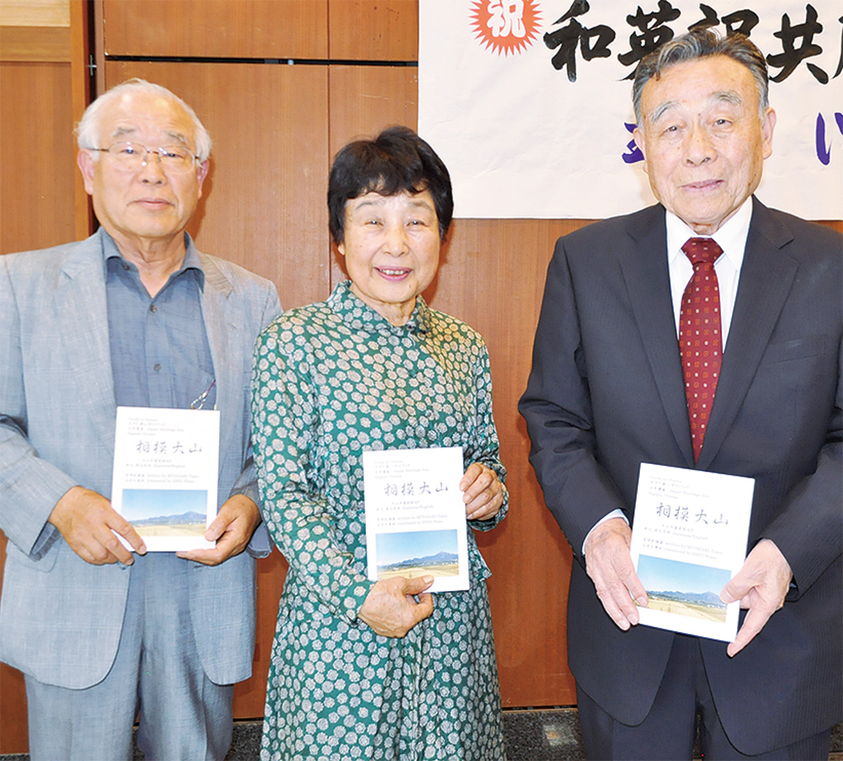 翻訳した石井さんは「固有名詞を英訳するのに苦労した。ネイティブの友人に意味が通じるかチェックしてもらっているので我ながら良くできたのでは」と話した。宮崎さんは「40代の頃、大山に関する資料を集めて、10年かけてガイドブックを出版した。今回、協会や関係者の皆のおかげで和英共用のガイドブックができ上がりうれしい」と感謝を表していた。