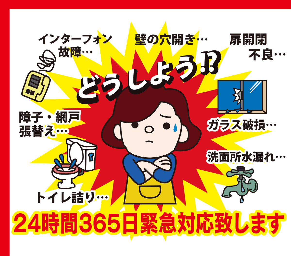 そんな家のトラブルは地域密着のダイカン(株)におまかせ。同社は創業16年を迎え、確かな技術で信頼を集める住宅リフォーム会社。地元だからできる、緊急時の24時間・365日対応も嬉しい。