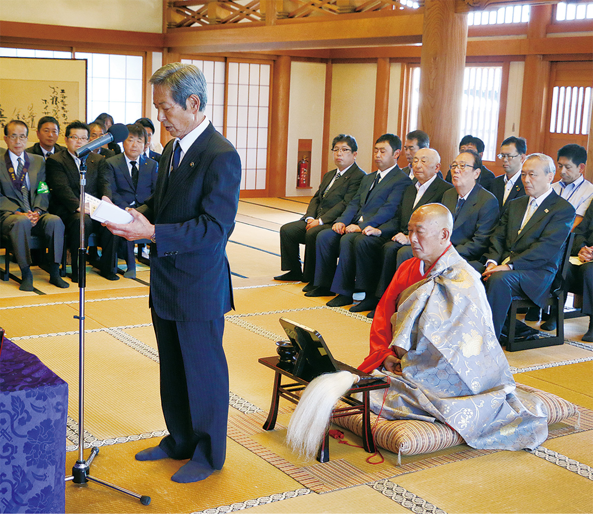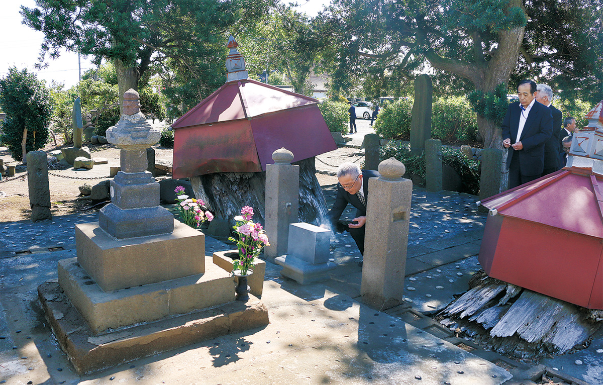高山市長は関係者を前に「今年中に新東名の伊勢原大山インターチェンジが開設されると、上粕屋周辺も大きく変わる。歴史、伝統、文化を国内外にさらに発信していきたいと思います」などとあいさつ。その後、出席者は、道灌公の墓前に線香をあげて、お墓参りをした。