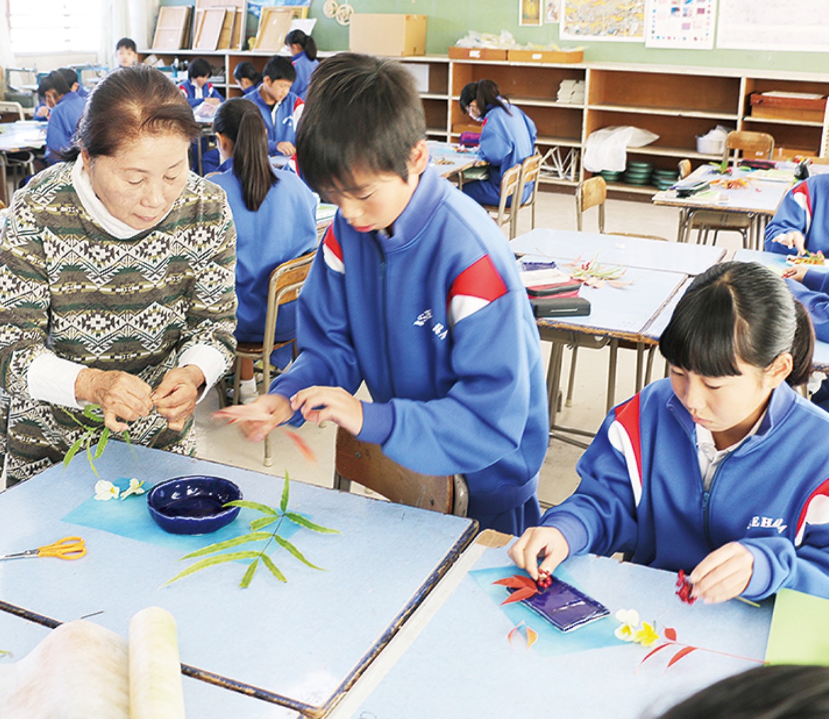 12月20日には、村山さん宅の窯で焼きあがった作品が生徒たちの元に届けられ、季節の植物を使った飾り付けの授業を実施。生徒らは「自分でテーマを決めて作るのが面白い。やったことがなかったので楽しかった」などと感想を話した。