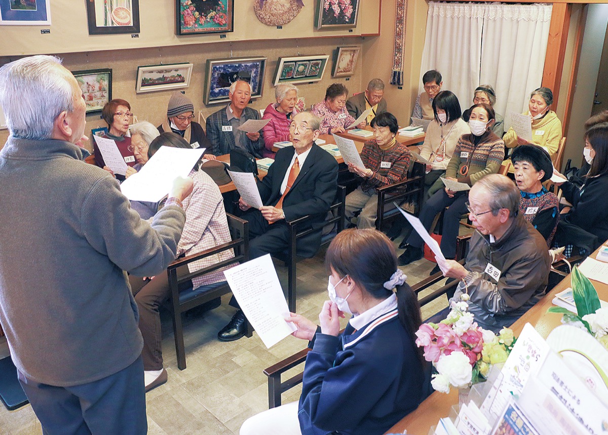 参加者らは同店の歌声ボランティア「うたごえ風海」のメンバーらの伴奏で、一緒になって童謡や唱歌などを歌った。その後は、お茶を飲みながら介護者同士でお話会を実施。「老老介護が心配」「デイサービスを利用することで自分の時間を持つことができる」など、普段の介護で感じていることや近況などを語り合った。