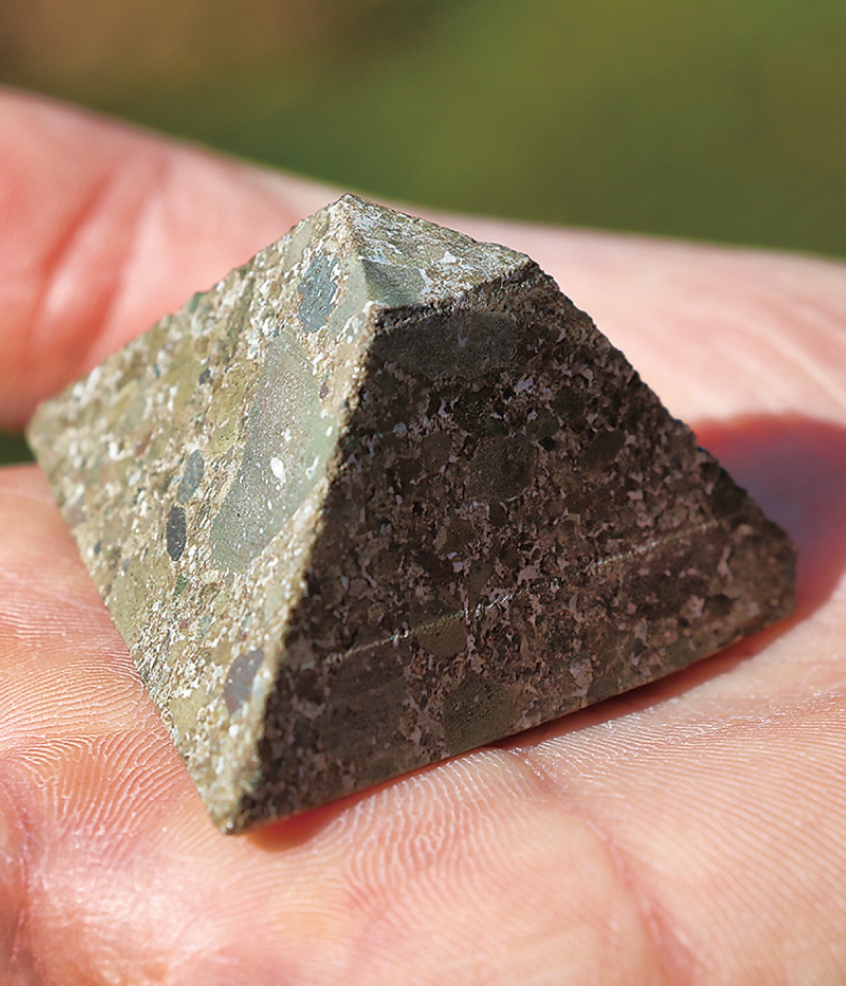 2人は、日向石が大山の一部を構成している点に着目。日向石を加工した小物の土産品として、大山を模った箸置きの商品化を第一弾として検討。廃材を活用して試作品づくりに着手した。