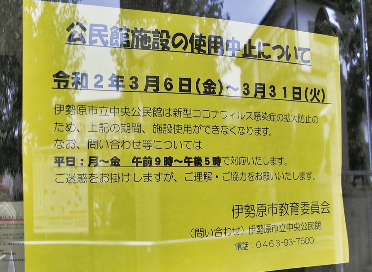 伊勢原市は3月5日、新型コロナウイルス感染防止対策の強化を図るため、3月6日から31日(火)まで、コミュニティセンターや公民館、福祉館など52カ所の公共施設(市役所本庁舎と分室、駅窓口センターを除く)の一般利用を休止することを発表した。