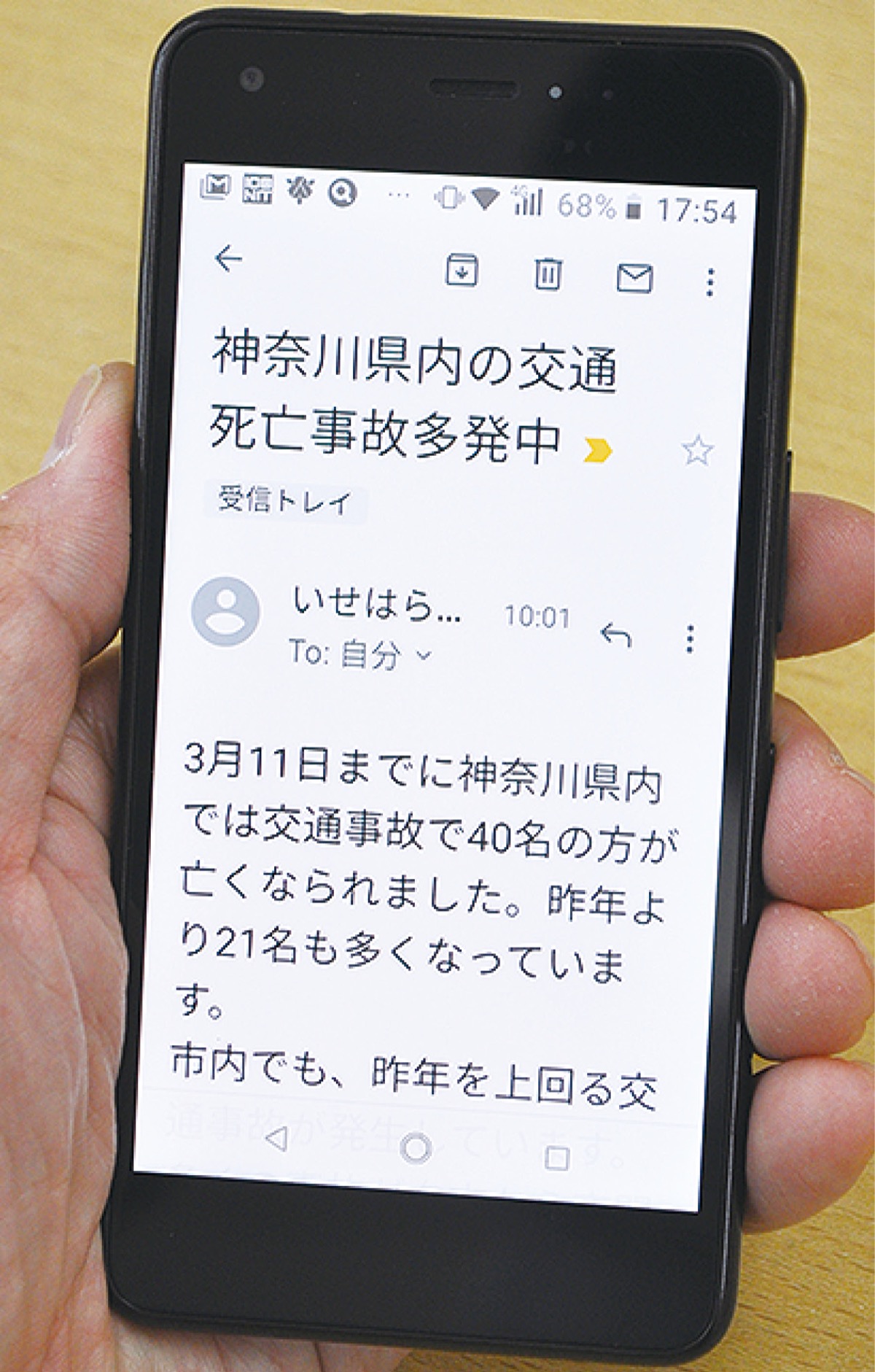 こうした状況を受け伊勢原署は、市を通じて「くらし安心メール」を3月17日、24日に配信。交通ルールの順守などを呼び掛けた。伊勢原署担当者は「危険に対する想像力を働かせ、改めて交通ルールの意味と危険性を理解し、常に周囲の状況確認をしてほしい。交通安全に協力をお願いします」と話している。
