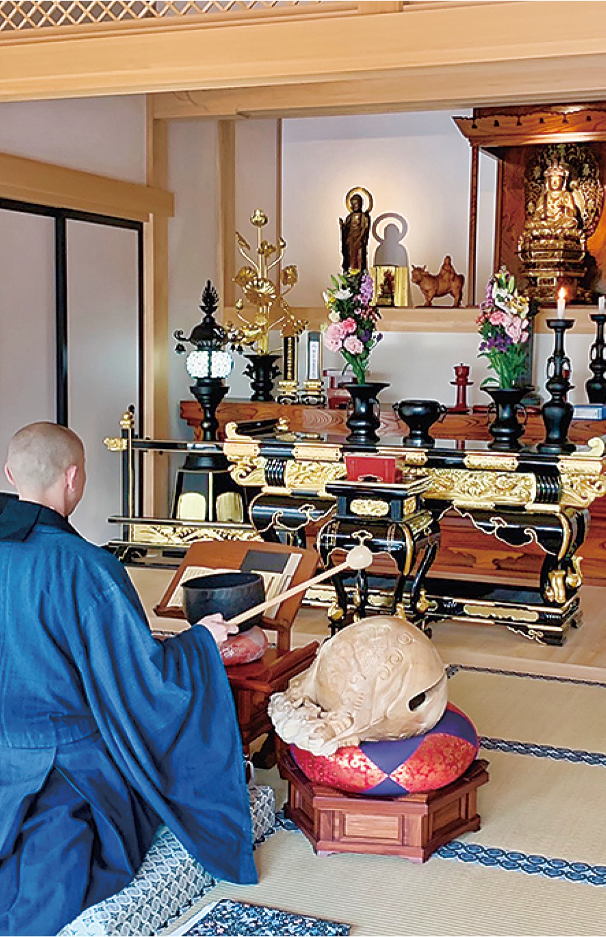 臨済宗建長寺派の同寺。松本住職は、禅宗の『禅宗日課聖典』の中に、七つの鬼を退治し、疾病を払うという意味のお経があることに着目。新型コロナウイルスの感染が拡大した3月中頃から毎朝本堂で唱えることを始めた。