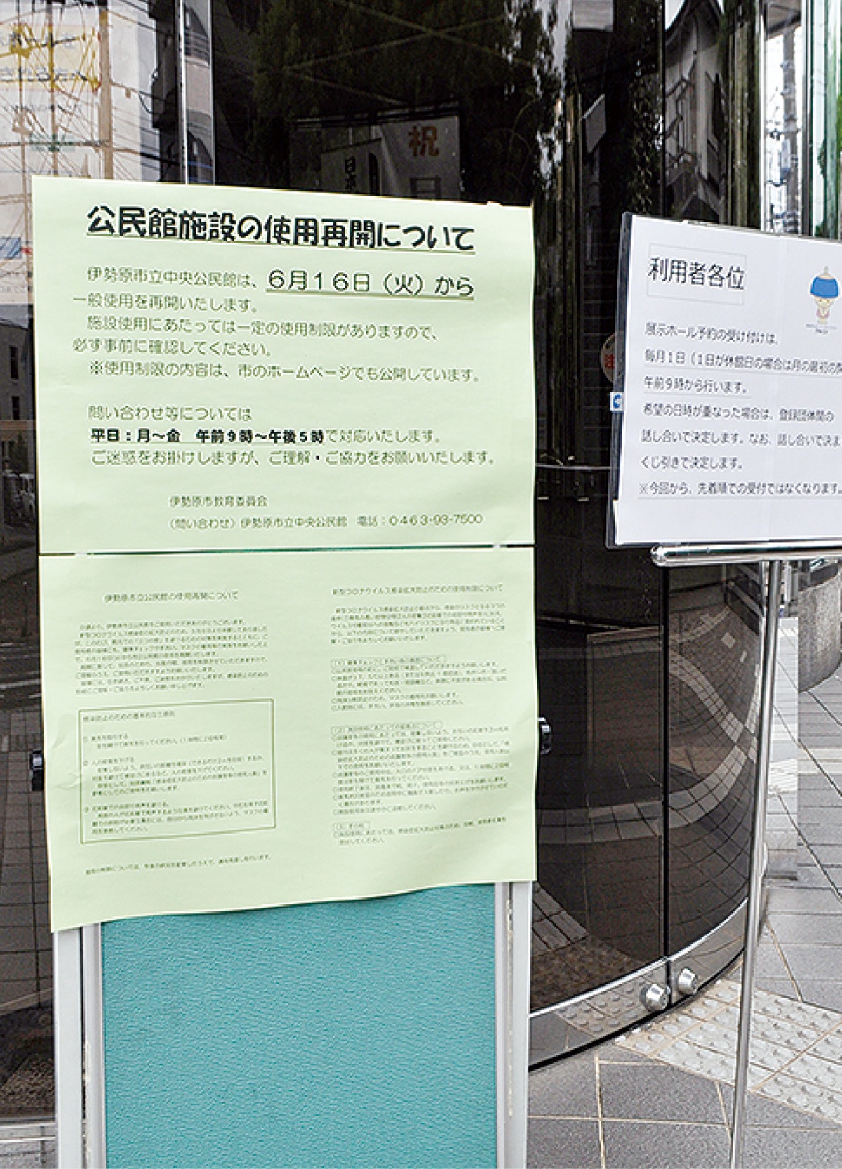 新型コロナウイルス感染症拡大による緊急事態宣言が5月25日、神奈川県を含む5都道県で解除された。これに伴い伊勢原市教育委員会は6月1日から市内小中学校の教育活動を段階的に再開。市内10小学校と4中学校で学校が再開された。また市は一般利用をが休止していた屋外公共施設を9日(火)から、屋内公共施設を16日(火)から再開する。(6月3日起稿)