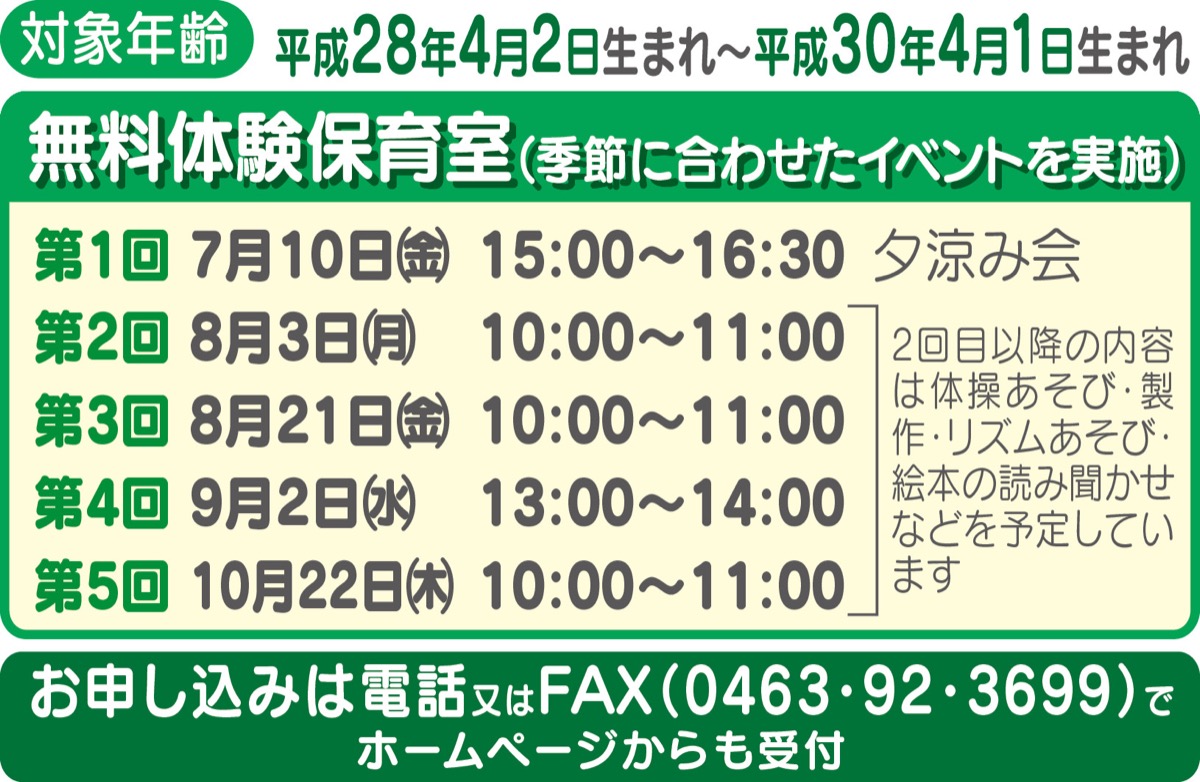 無料体験保育室のお知らせ