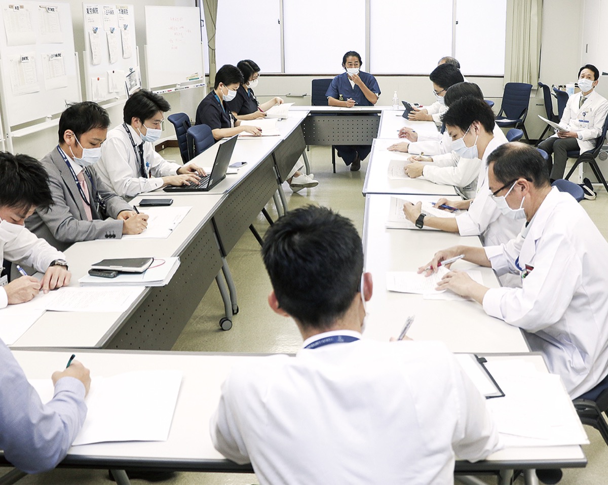 同病院ではコロナ前から「感染対策室」を中心に、感染症に対する知識を高め、院内感染対策を徹底してきたが、コロナに対応する調整本部を新たに設置。医師や看護師、検査技師などが参加し、現在は週3日ミーティングを行っている。渡辺病院長は「情報を共有して、必要な対応が迅速にできている。決裁者も参加しているので、この場ですべての対応が決められる」と話す。