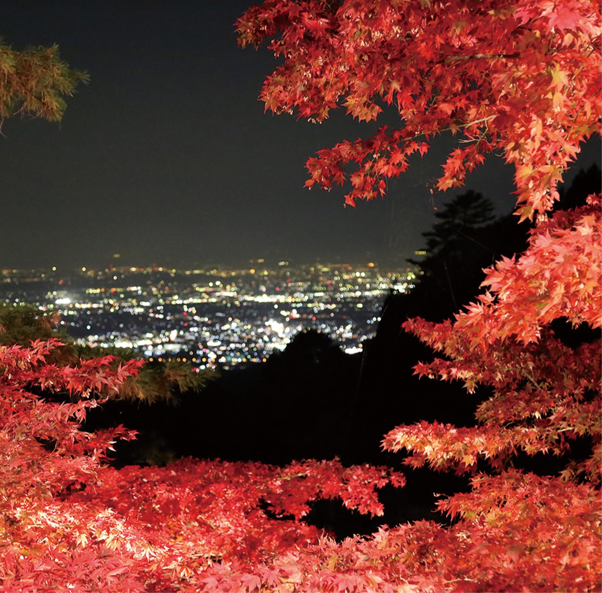 大山の紅葉ライトアップは、大山寺開山1250年を記念して始まり、大山地区の旅館や店舗などで組織する大山観光振興会(目黒仁会長)主催のもと、今年で16回目を迎える。灯りに照らされて浮かび上がる紅葉と、きらめく街の夜景が織りなす幻想的な風景を見ようと、例年多数の観光客らでにぎわう。