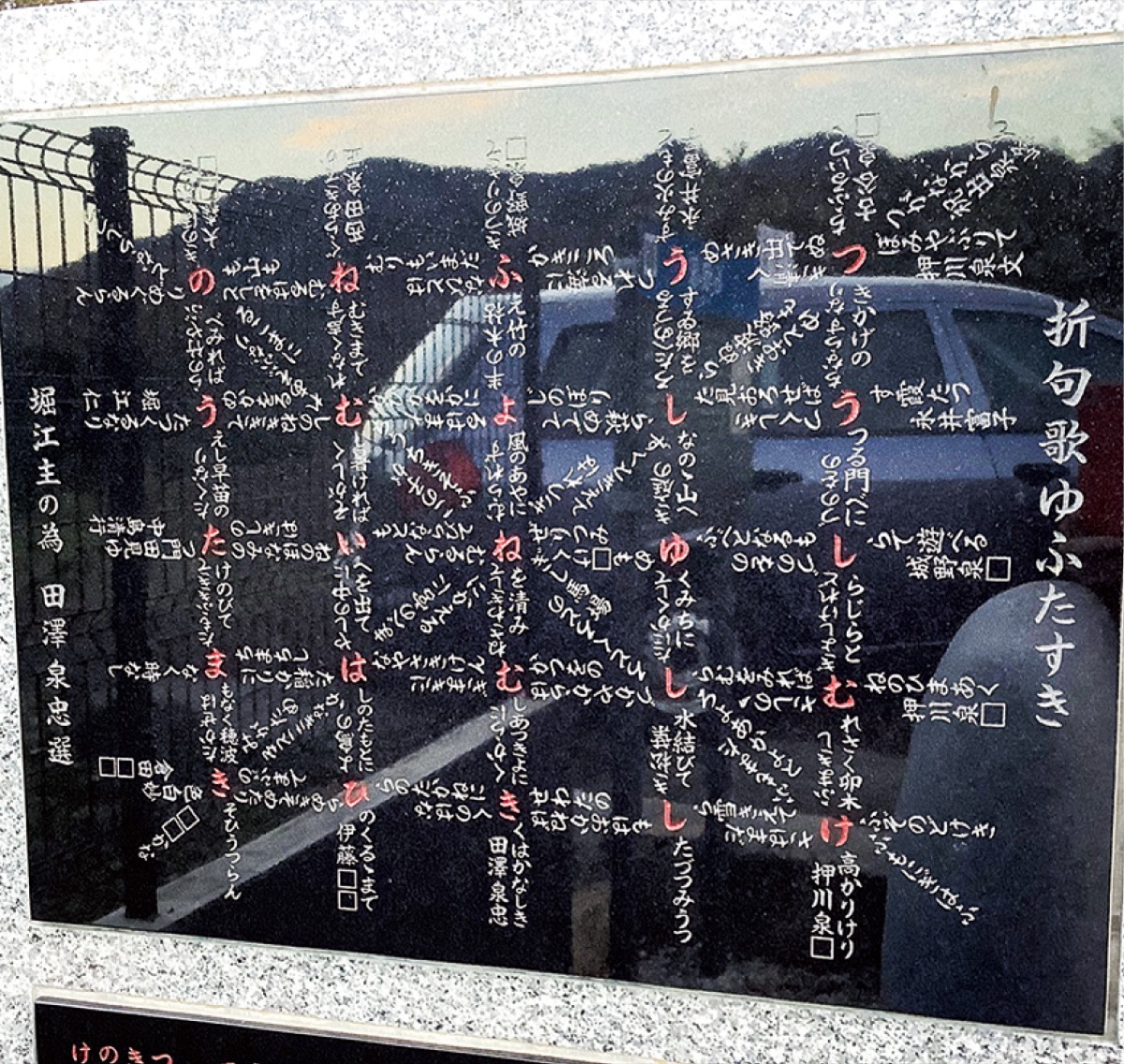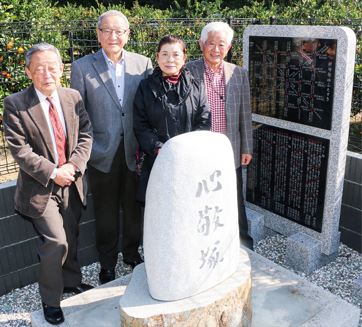 市内三ノ宮の「心敬塚」記念碑の敷地内に、教育委員長などを歴任した故・堀江政伸さん宅に伝わる「綴連句」の解読碑が建立された。