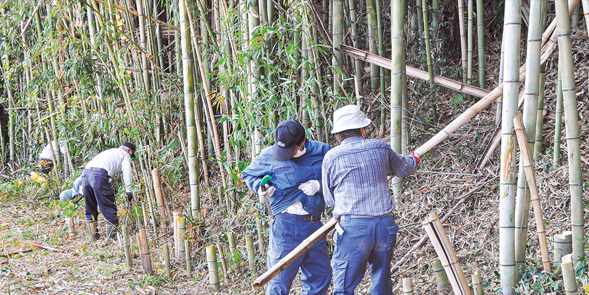 浄業寺史跡保存活用委員会のメンバーや地元有志らが11月25日、28日の2日間、市内三ノ宮にある市指定文化財の浄業寺跡周辺の竹を伐採した。