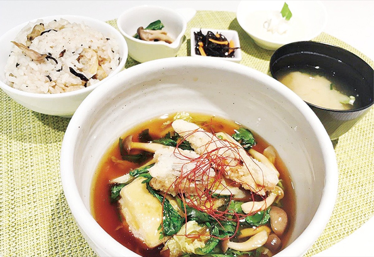 期間限定の「揚げ出し豆腐 サワラと冬野菜のあんかけ御膳」(990円)がお勧め。ふわふわの揚げ出し豆腐に冬野菜とサワラの熱々のあんかけで身体も温まる。炊き込みご飯、みそ汁、小鉢2品にデザートが付き女性にも人気だ。