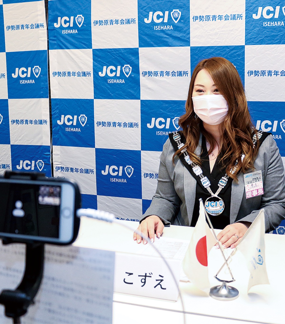 伊勢原青年会議所(伊勢原JC)の1月第一例会が、1月12日にオンラインで開催され、1月1日付けで理事長に就任した中村こずえさんがあいさつした。