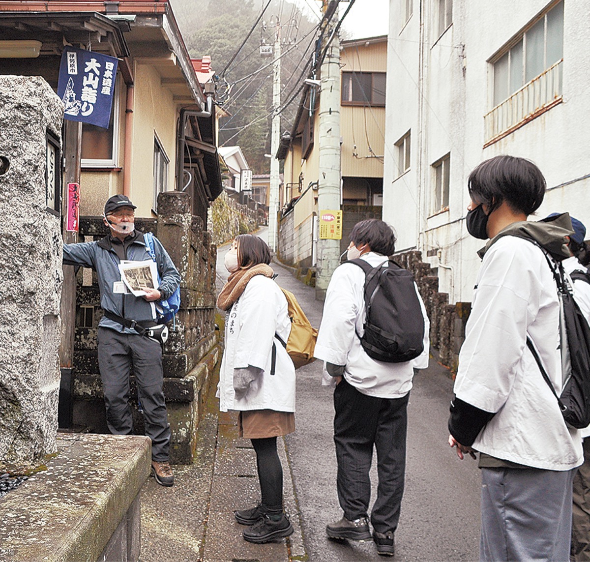 千葉県から4人が参加した同ツアー。伊勢原市観光協会の志村功事務局長らがガイドを担当し、初日は宿坊やこま参道を散策。大山阿夫利神社下社では納め太刀を奉納した。2日目は中津川や宮ケ瀬湖をeバイクでサイクリング。参加者の太田知奈美さん(27)は「大山は初めて。見過ごしてしまいそうな事や歴史の背景をガイドの方が教えてくれて楽しめた」と話した。今後は各観光協会が情報を共有し、一般に向けたツアーとして企画を進めていくという。