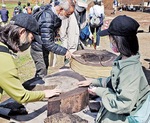 市内西富岡の向畑(むこうばた)遺跡で4月18日、発掘現場見学会が開催された。公益財団法人かながわ考古学財団(株)が同所で縄文時代後期の埋没林が発見されたと発表したことから、午前午後2回の見学会に約400人が訪れた。