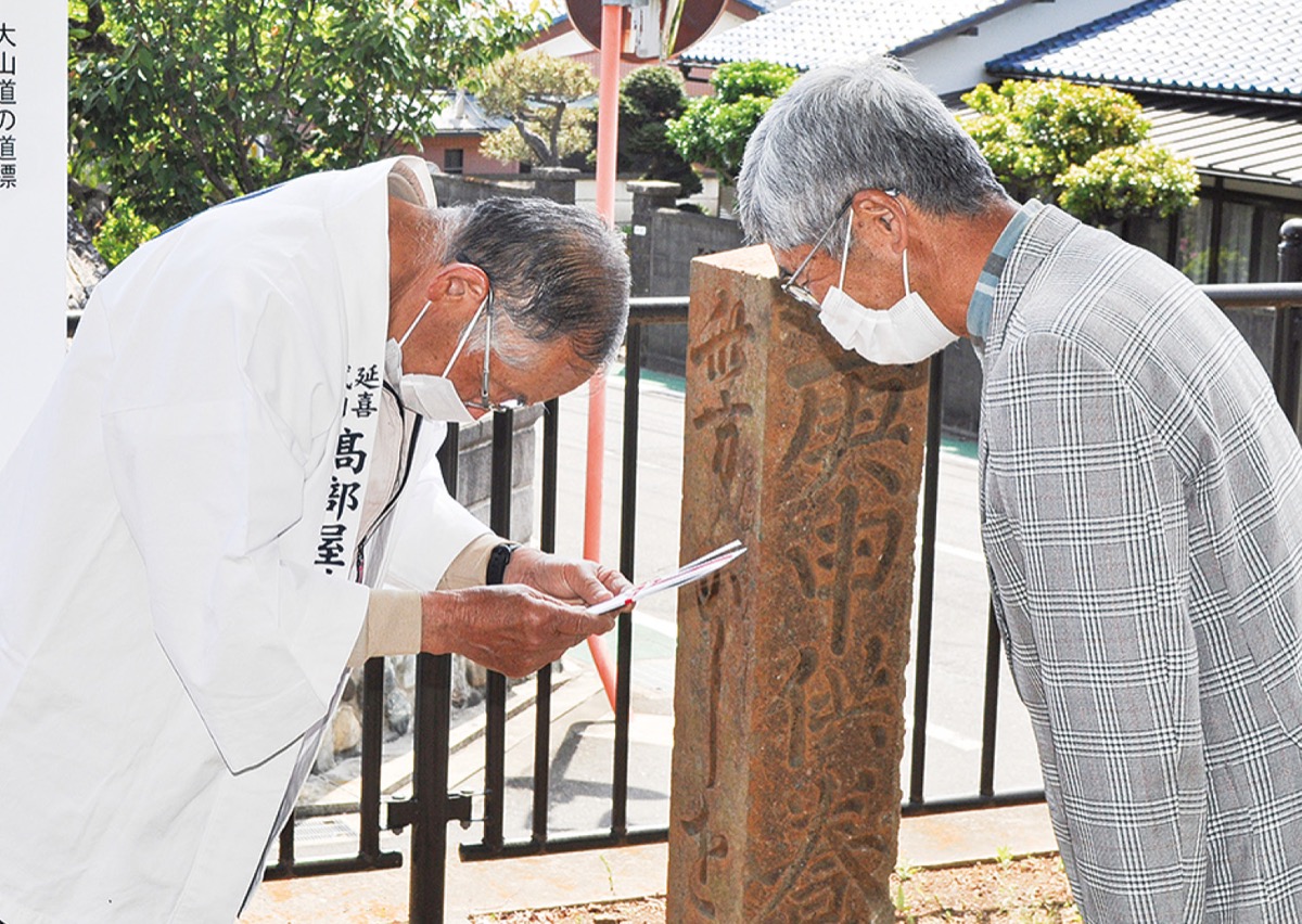 大山道は大山詣りに向かう人々が歩いた道。関東一円や福島県、新潟県から参詣する人が利用した。市教委によると、参詣者を案内する道標は、市内に100基以上が確認されているという。