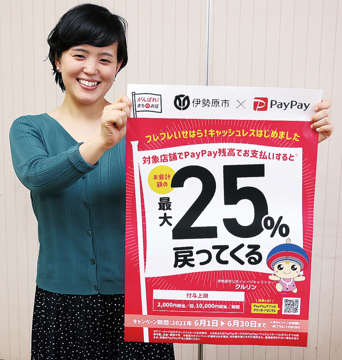 事業の名称は「フレフレいせはら!キャッシュレスはじめました 最大25%戻ってくるキャンペーン」。スマートフォン決済アプリ「PayPay(ペイペイ)」と連携して行う取り組みで、専用アプリを利用した決済に対して、利用額の最大25%がポイントとして還元されるもの。