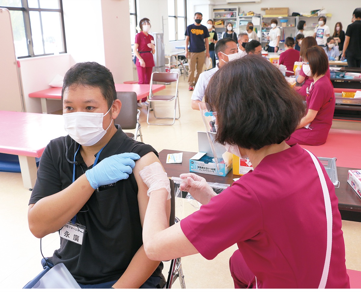 同組合では、国の職域接種への方針発表を受けて、ワクチン接種に関する地域の負担軽減や、接種の加速化を図るため職域接種の検討を開始。1日あたり300人が、同組合の用意した大型バスで市内鈴川から同病院へ行き、接種を受ける仕組みを構築した。