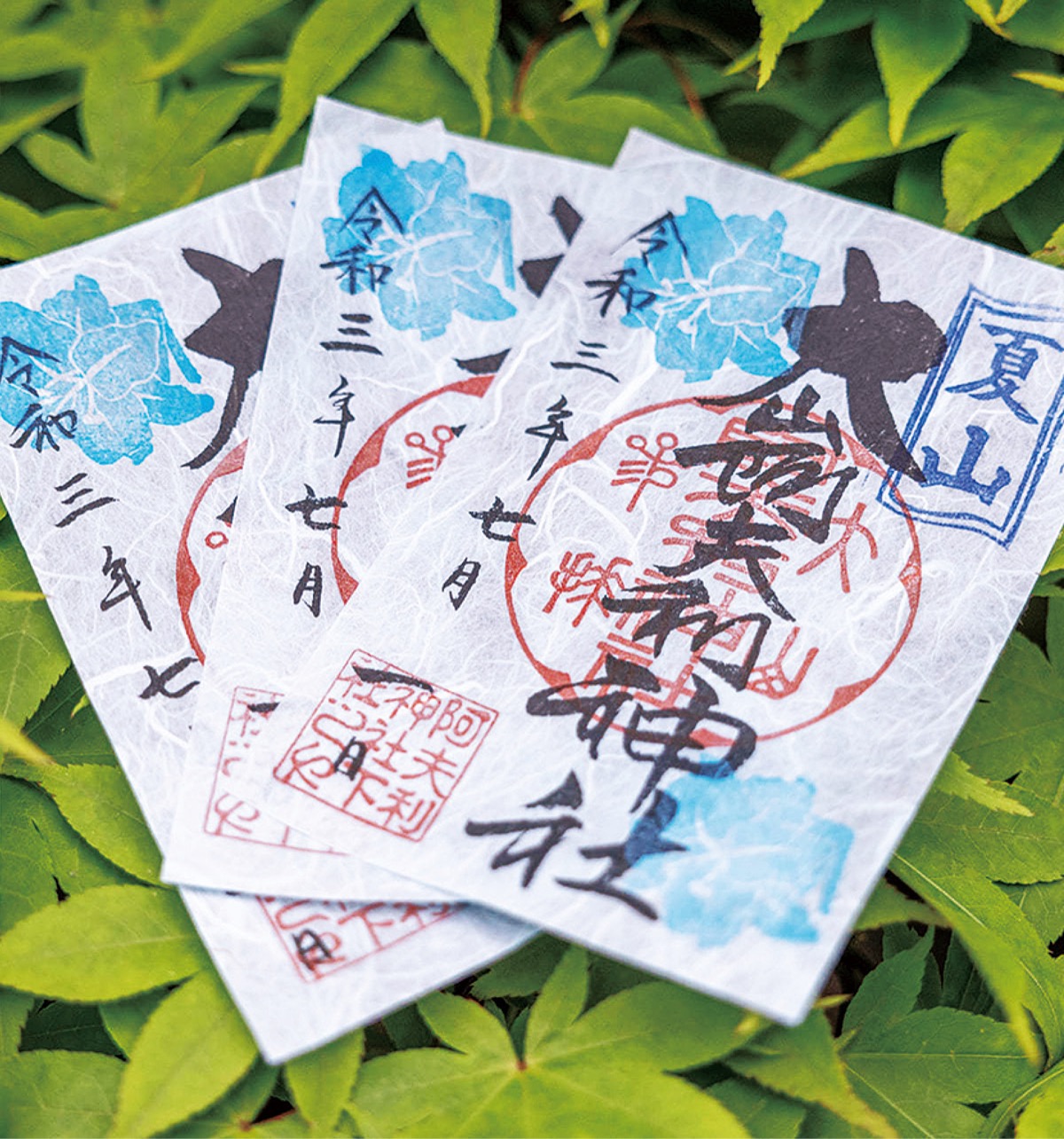 大山の水流を想起させる「夏山」の御朱印が、大山阿夫利神社(目黒仁宮司)の下社で頒布されている。