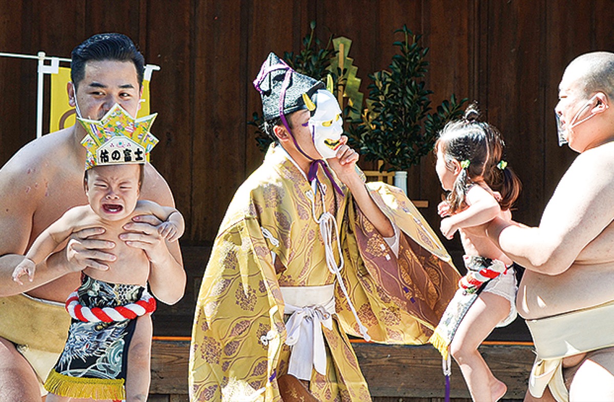 赤ちゃんが元気に泣くことで健やかな成長を願う神事。鳴き声が邪気を払うとされ、400年以上の歴史があるとされている。