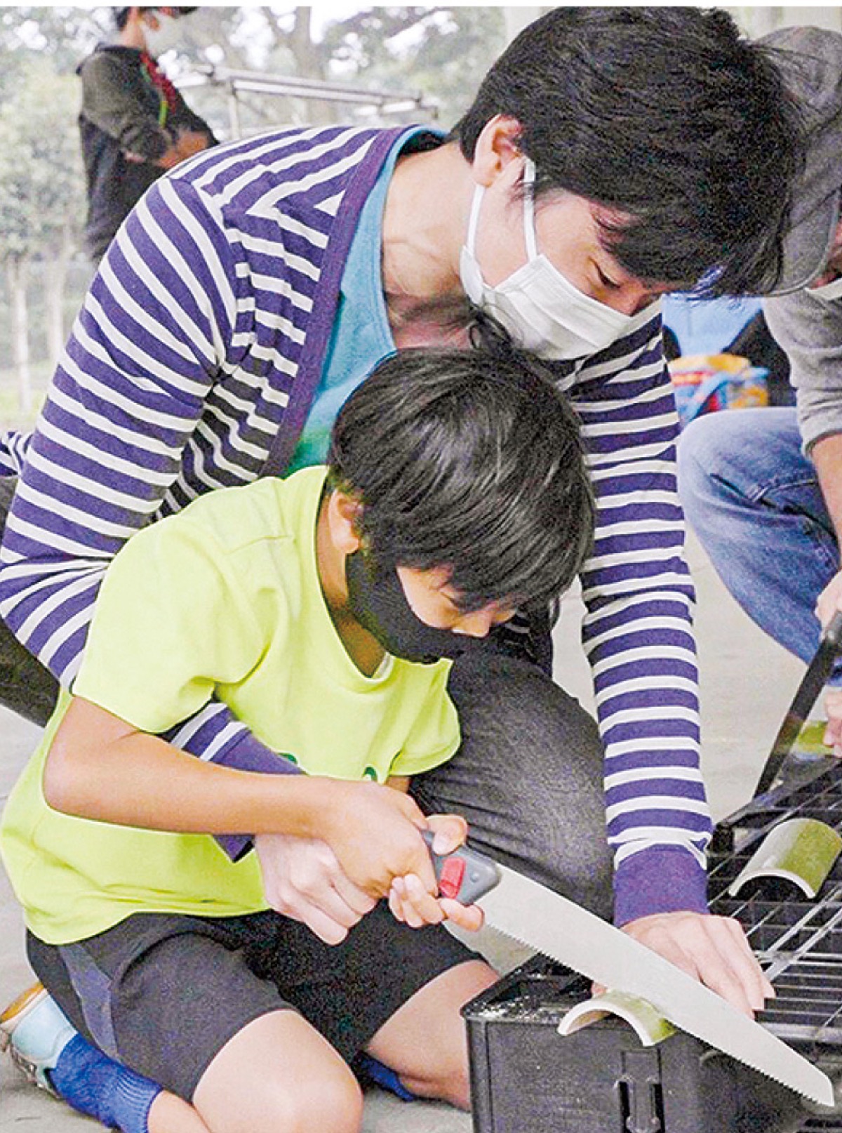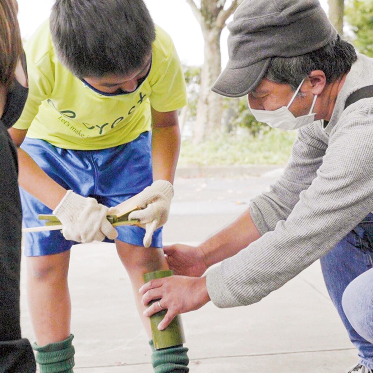 サッカークラブ伊勢原FCフォレスト(一場哲宏代表)が9月26日、日向の能力開発センターで竹のサッカー用スネあてをつくるワークショップを開催した。