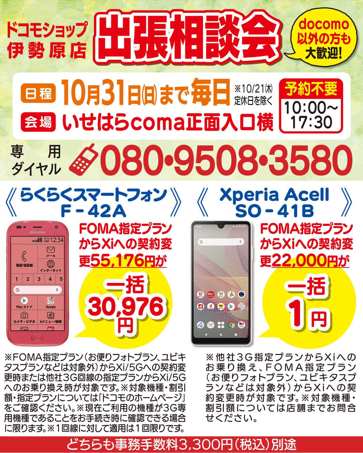 いせはらcomaで10月31日まで毎日実施(21日は定休)。機種変更や料金相談など「買い物ついでに相談できる」と喜びの声が上がっている。