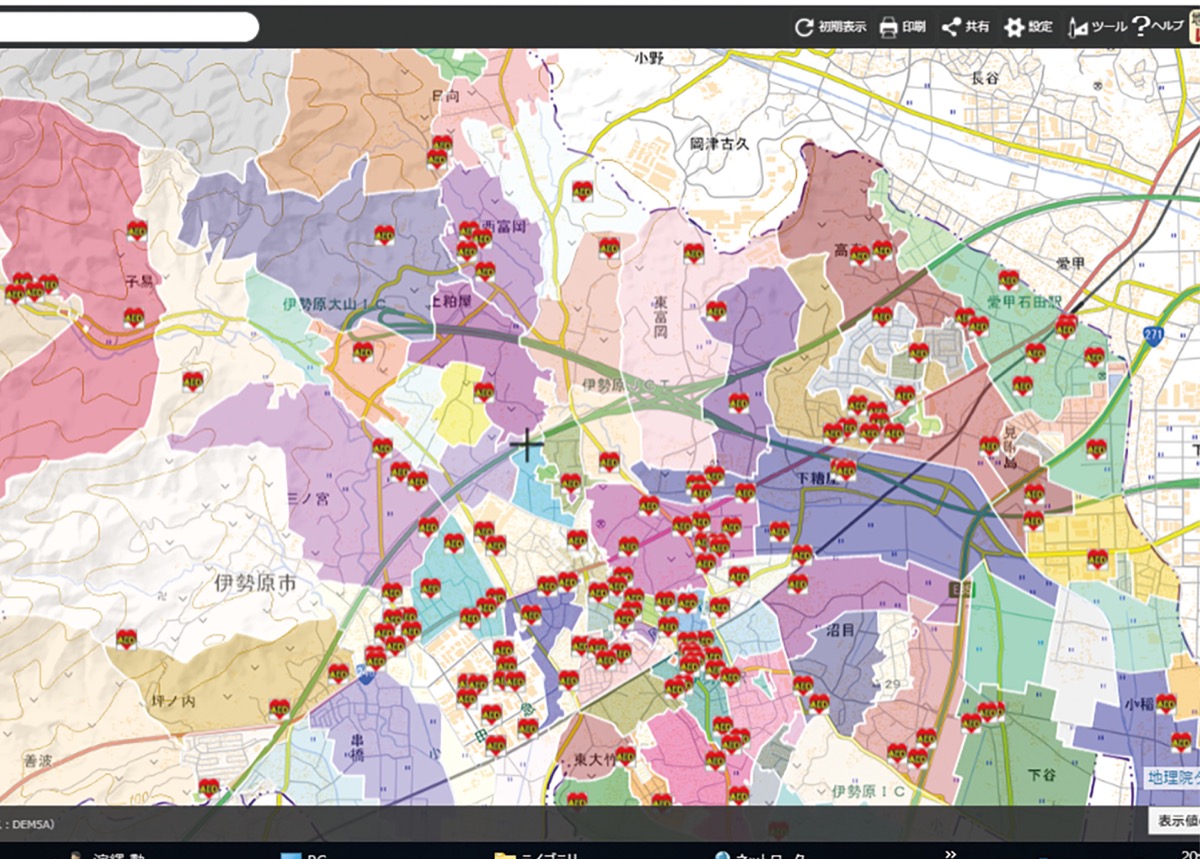 いせはらWebMapsは、防災をはじめ、子育て情報など、市の情報を公開して、広く市民に役立ててもらうことを目的にしたもの。国土交通省国土地理院の「地理院地図」のシステムを利用して、伊勢原市に関する情報を発信している。