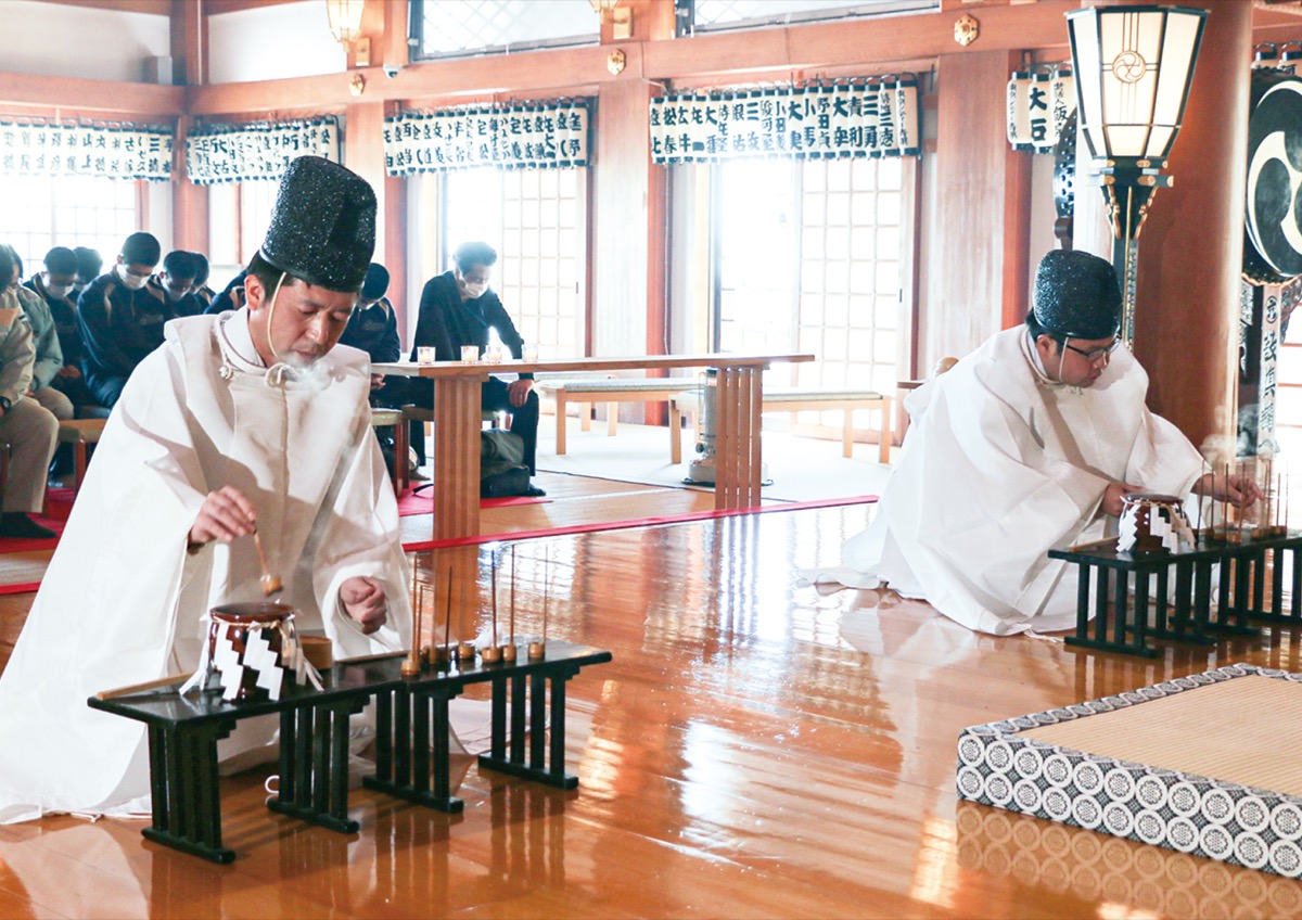 筒粥神事は、神職が古式に則った方法で煮た粥を、18品目の作物の名前が書かれた小さな竹筒ですくい、形の崩れていない米粒の数を数えて豊凶や気候を占うもの。300年以上前から続くとされ、農家の作付けの目安にもされている。かつて市内でも栽培されていたタバコが品目に入っているのが特徴。