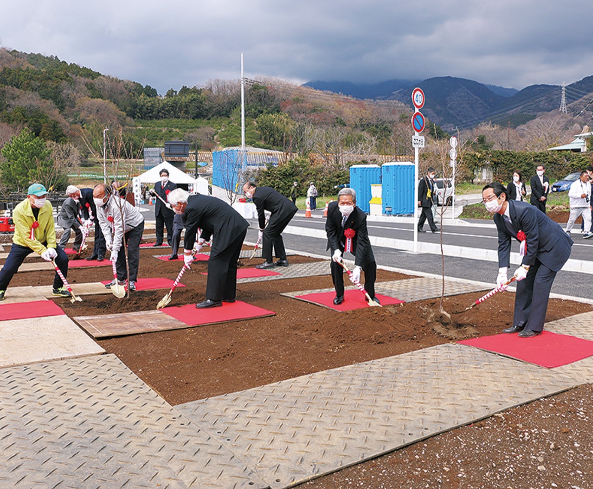 午後2時の開通に先駆けて、神奈川県がバイパス開通を記念する植樹式を実施。この日は、神奈川県の小板橋聡士副知事や高山松太郎伊勢原市長、渡辺紀之県議をはじめ、地元自治会の役員らが式典に参加し、おかめ桜の苗木を県道の脇に植樹した。